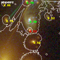 Object #792 x,y = (2622, 2586) RA, Dec = (01:37:24.624, -8:27:16.56) = (24.35260, -8.45460) BPZ = 0.528 [0.502--0.552] type = 4.00 (Ell4_A_0) chisq2 = 1.36 ODDS = 1.00 z_cluster = 0.566
