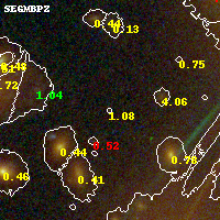 Object #802 x,y = (2487, 2660) RA, Dec = (01:37:25.176, -8:27:11.88) = (24.35490, -8.45330) BPZ = 1.078 [0.220--3.659] type = 9.40 (SB2_B10 - SB3_B10) chisq2 = 0.48 ODDS = 0.09 z_cluster = 0.566