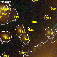 Object #821 x,y = (2473, 2633) RA, Dec = (01:37:25.224, -8:27:13.68) = (24.35510, -8.45380) BPZ = 0.518 [0.314--1.249] type = 7.70 (SB1_B10 - Scd_B10) chisq2 = 3.56 ODDS = 0.16 z_cluster = 0.566