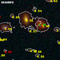 Object #89 x,y = (2378, 3520) RA, Dec = (01:37:25.608, -8:26:20.40) = (24.35670, -8.43900) BPZ = 0.574 [0.256--4.060] type = 7.80 (SB1_B10 - Scd_B10) chisq2 = 0.42 ODDS = 0.18 z_cluster = 0.566