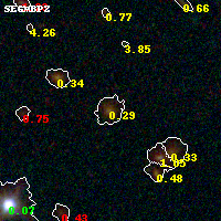 Object #96 x,y = (2632, 3561) RA, Dec = (01:37:24.576, -8:26:17.88) = (24.35240, -8.43830) BPZ = 0.294 [0.231--0.681] type = 4.00 (Ell4_A_0) chisq2 = 0.47 ODDS = 0.33 z_cluster = 0.566