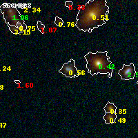 Object #98 x,y = (2977, 3556) RA, Dec = (01:37:23.184, -8:26:18.24) = (24.34660, -8.43840) BPZ = 0.557 [0.167--0.697] type = 10.00 (SB3_B10) chisq2 = 0.83 ODDS = 0.61 z_cluster = 0.566