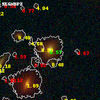 Object #986 x,y = (2154, 2370) RA, Dec = (01:37:26.520, -8:27:29.52) = (24.36050, -8.45820) BPZ = 0.568 [0.522--0.615] type = 5.40 (ES0_B10 - Sbc_B10) chisq2 = 0.05 ODDS = 0.99 z_cluster = 0.566