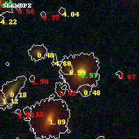 Object #987 x,y = (2137, 2374) RA, Dec = (01:37:26.592, -8:27:29.16) = (24.36080, -8.45810) BPZ = 0.587 [0.458--0.690] type = 3.50 (Ell4_A_0 - Ell5_A_0) chisq2 = 0.13 ODDS = 0.72 z_cluster = 0.566