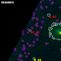 Black segments are analyzed here. Roll mouse over color images to view segments. Best viewed in a wide browser window (1200 pixels or more). Download SED & P(z) plots to view larger versions.