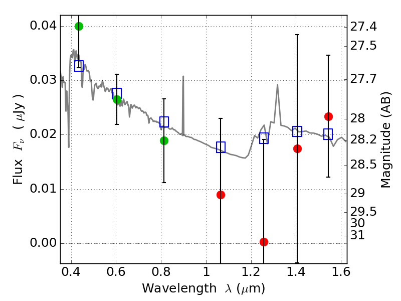 Object #1192   x,y = (2294, 3452)   RA, Dec = (01:37:25.944, -8:26:24.36) = (24.35810, -8.44010)   BPZ = 2.208 [0.658--2.832]   type = 11.00 (SB11_A_0_l)   chisq2 = 0.65   ODDS = 0.22   z_cluster = 0.566