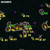 Black segments are analyzed here. Roll mouse over color images to view segments. Best viewed in a wide browser window (1200 pixels or more). Download SED & P(z) plots to view larger versions.