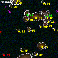 Black segments are analyzed here. Roll mouse over color images to view segments. Best viewed in a wide browser window (1200 pixels or more). Download SED & P(z) plots to view larger versions.