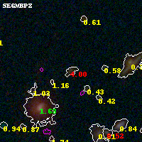 Black segments are analyzed here. Roll mouse over color images to view segments. Best viewed in a wide browser window (1200 pixels or more). Download SED & P(z) plots to view larger versions.