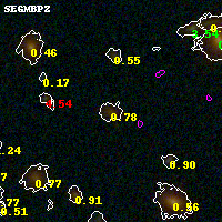 Black segments are analyzed here. Roll mouse over color images to view segments. Best viewed in a wide browser window (1200 pixels or more). Download SED & P(z) plots to view larger versions.