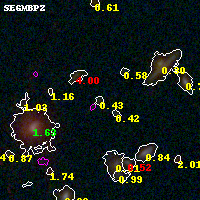 Black segments are analyzed here. Roll mouse over color images to view segments. Best viewed in a wide browser window (1200 pixels or more). Download SED & P(z) plots to view larger versions.