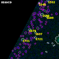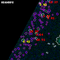 Black segments are analyzed here. Roll mouse over color images to view segments. Best viewed in a wide browser window (1200 pixels or more). Download SED & P(z) plots to view larger versions.