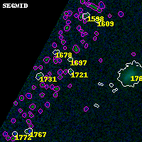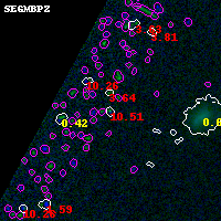 Black segments are analyzed here. Roll mouse over color images to view segments. Best viewed in a wide browser window (1200 pixels or more). Download SED & P(z) plots to view larger versions.