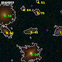 Black segments are analyzed here. Roll mouse over color images to view segments. Best viewed in a wide browser window (1200 pixels or more). Download SED & P(z) plots to view larger versions.