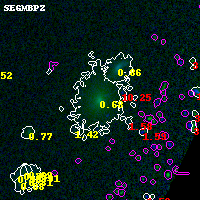 Black segments are analyzed here. Roll mouse over color images to view segments. Best viewed in a wide browser window (1200 pixels or more). Download SED & P(z) plots to view larger versions.