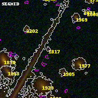 Black segments are analyzed here. Roll mouse over color images to view segments. Best viewed in a wide browser window (1200 pixels or more). Download SED & P(z) plots to view larger versions.