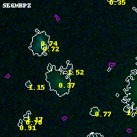 Black segments are analyzed here. Roll mouse over color images to view segments. Best viewed in a wide browser window (1200 pixels or more). Download SED & P(z) plots to view larger versions.