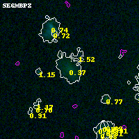 Black segments are analyzed here. Roll mouse over color images to view segments. Best viewed in a wide browser window (1200 pixels or more). Download SED & P(z) plots to view larger versions.