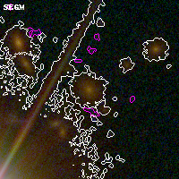 Black segments are analyzed here. Roll mouse over color images to view segments. Best viewed in a wide browser window (1200 pixels or more). Download SED & P(z) plots to view larger versions.