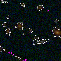 Black segments are analyzed here. Roll mouse over color images to view segments. Best viewed in a wide browser window (1200 pixels or more). Download SED & P(z) plots to view larger versions.