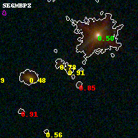 Black segments are analyzed here. Roll mouse over color images to view segments. Best viewed in a wide browser window (1200 pixels or more). Download SED & P(z) plots to view larger versions.