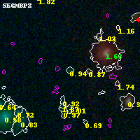 Black segments are analyzed here. Roll mouse over color images to view segments. Best viewed in a wide browser window (1200 pixels or more). Download SED & P(z) plots to view larger versions.