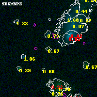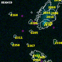 Black segments are analyzed here. Roll mouse over color images to view segments. Best viewed in a wide browser window (1200 pixels or more). Download SED & P(z) plots to view larger versions.