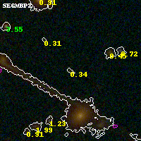 Black segments are analyzed here. Roll mouse over color images to view segments. Best viewed in a wide browser window (1200 pixels or more). Download SED & P(z) plots to view larger versions.