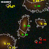 Black segments are analyzed here. Roll mouse over color images to view segments. Best viewed in a wide browser window (1200 pixels or more). Download SED & P(z) plots to view larger versions.