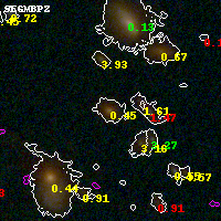 Black segments are analyzed here. Roll mouse over color images to view segments. Best viewed in a wide browser window (1200 pixels or more). Download SED & P(z) plots to view larger versions.