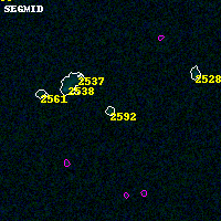 Black segments are analyzed here. Roll mouse over color images to view segments. Best viewed in a wide browser window (1200 pixels or more). Download SED & P(z) plots to view larger versions.