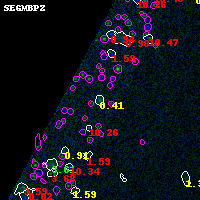 Black segments are analyzed here. Roll mouse over color images to view segments. Best viewed in a wide browser window (1200 pixels or more). Download SED & P(z) plots to view larger versions.