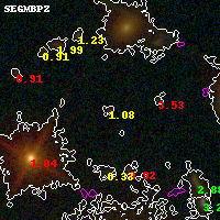Black segments are analyzed here. Roll mouse over color images to view segments. Best viewed in a wide browser window (1200 pixels or more). Download SED & P(z) plots to view larger versions.