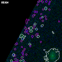 Black segments are analyzed here. Roll mouse over color images to view segments. Best viewed in a wide browser window (1200 pixels or more). Download SED & P(z) plots to view larger versions.