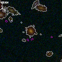 Black segments are analyzed here. Roll mouse over color images to view segments. Best viewed in a wide browser window (1200 pixels or more). Download SED & P(z) plots to view larger versions.