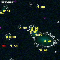 Black segments are analyzed here. Roll mouse over color images to view segments. Best viewed in a wide browser window (1200 pixels or more). Download SED & P(z) plots to view larger versions.