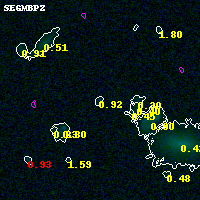 Black segments are analyzed here. Roll mouse over color images to view segments. Best viewed in a wide browser window (1200 pixels or more). Download SED & P(z) plots to view larger versions.