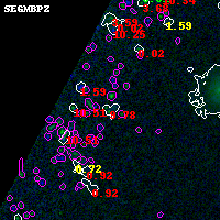 Black segments are analyzed here. Roll mouse over color images to view segments. Best viewed in a wide browser window (1200 pixels or more). Download SED & P(z) plots to view larger versions.