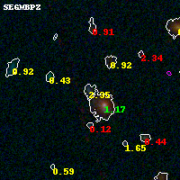 Black segments are analyzed here. Roll mouse over color images to view segments. Best viewed in a wide browser window (1200 pixels or more). Download SED & P(z) plots to view larger versions.