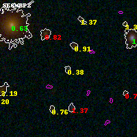 Black segments are analyzed here. Roll mouse over color images to view segments. Best viewed in a wide browser window (1200 pixels or more). Download SED & P(z) plots to view larger versions.