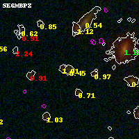 Black segments are analyzed here. Roll mouse over color images to view segments. Best viewed in a wide browser window (1200 pixels or more). Download SED & P(z) plots to view larger versions.