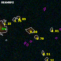 Black segments are analyzed here. Roll mouse over color images to view segments. Best viewed in a wide browser window (1200 pixels or more). Download SED & P(z) plots to view larger versions.