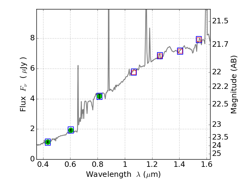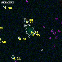 Black segments are analyzed here. Roll mouse over color images to view segments. Best viewed in a wide browser window (1200 pixels or more). Download SED & P(z) plots to view larger versions.