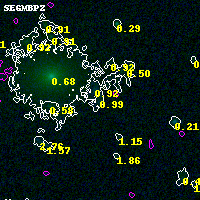 Black segments are analyzed here. Roll mouse over color images to view segments. Best viewed in a wide browser window (1200 pixels or more). Download SED & P(z) plots to view larger versions.