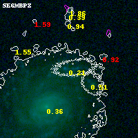 Black segments are analyzed here. Roll mouse over color images to view segments. Best viewed in a wide browser window (1200 pixels or more). Download SED & P(z) plots to view larger versions.