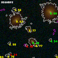 Black segments are analyzed here. Roll mouse over color images to view segments. Best viewed in a wide browser window (1200 pixels or more). Download SED & P(z) plots to view larger versions.