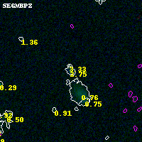 Black segments are analyzed here. Roll mouse over color images to view segments. Best viewed in a wide browser window (1200 pixels or more). Download SED & P(z) plots to view larger versions.