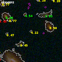 Black segments are analyzed here. Roll mouse over color images to view segments. Best viewed in a wide browser window (1200 pixels or more). Download SED & P(z) plots to view larger versions.