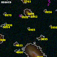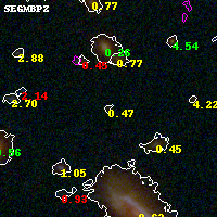 Black segments are analyzed here. Roll mouse over color images to view segments. Best viewed in a wide browser window (1200 pixels or more). Download SED & P(z) plots to view larger versions.