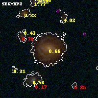 Black segments are analyzed here. Roll mouse over color images to view segments. Best viewed in a wide browser window (1200 pixels or more). Download SED & P(z) plots to view larger versions.